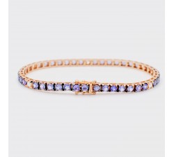 Bracciale Tennis con tanzanite e diamanti in oro rosa 18Kt con trattamento di brunitura sulle punte. Tanzanite taglio brillante Ct.5,46 5 Diamanti...