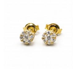 Orecchini in argento dorato con dettaglio rodiato in pietre zirconia cubica bianca e chiusura a farfalla. Questi deliziosi orecchini in argento...