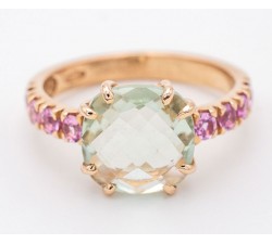 Anello in oro rosa 18Kt Prasiolite (ametista verde) taglio cuscino Zaffiri rosa taglio brillante per Ct. 0,65 Incluso con l’acquisto Scatola...
