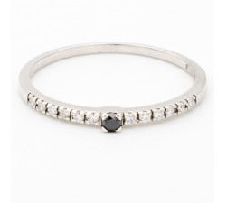 Fedina in oro bianco 18Kt Sul gambo Diamanti naturali taglio brillante per Ct.0,10 colore F purezza Vs Centrale Diamante nero taglio brillante da...