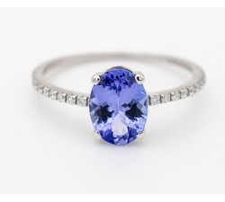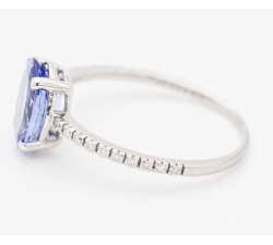 Anello in oro 18Kt Tanzanite taglio ovale 7x5mm per Ct.1,07 Diamanti naturali taglio brillante Ct.0,10 colore F purezza VS1 Incluso con l’acquisto...