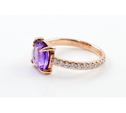 Anello in oro rosa 18Kt Ametista taglio cuscino da Cm.0,9x0,9 Zirconi Dimensione gambo mm.2,3 Incluso con l’acquisto Scatola Dienneci Gioielli...