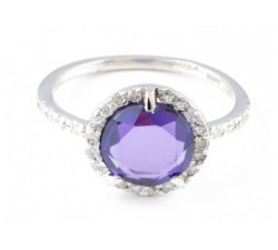 Anello in oro bianco 18Kt Diamanti taglio brillante Ct.0,28 colore F purezza Vs1 Ametista 0,8mm Incluso con l’acquisto Scatola Dienneci Gioielli...