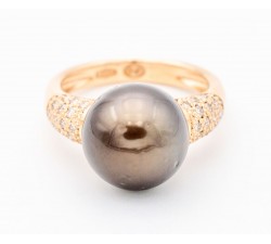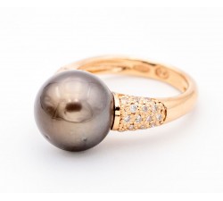 Anello perla tahitiana e diamanti in oro 18Kt -...