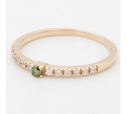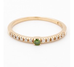 Fedina in oro rosa 18Kt Sul gambo Diamanti naturali taglio brillante per Ct.0,10 colore F purezza Vs Centrale Diamante verde taglio brillante da...