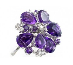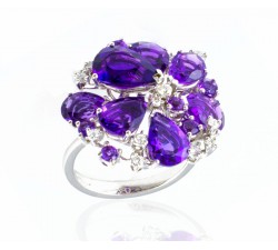 Anello in oro bianco 18Kt Diamanti taglio brillante Ct.0,72 colore G purezza Vs1 Ametista taglio goccia Misura 14 Messa a misura gratuita...