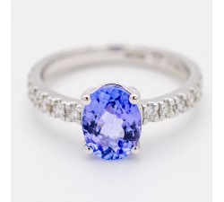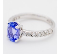 Anello in oro bianco 18Kt Tanzanite naturale taglio ovale per Ct.1,37 Diamanti naturali taglio brillante Ct.0,28 colore F purezza VS1 Corredato da...