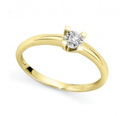 Anello in oro giallo 18kt con griffe a punte quadreDischetto diamantato in centro di lavoroMarca DonnaOro LuceDiamanti naturali taglio brillante...