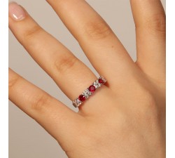 Anello in oro bianco 18kt fedina ondulata traforata Marca DonnaOro Jewels Rubini naturali taglio brillante Ct. 0,35 Rivenditori ufficiali DonnaOro...