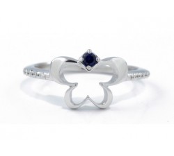 Anello in oro bianco 18Kt Collezione Butterfly Diamanti taglio brillante Ct.0,07 colore F purezza Vs1 Zaffiro blu taglio brillante per Ct.0,05...