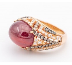 Anello in oro rosa 18Kt Rubino naturale taglio cabochon da Ct. 17,86 Diamanti naturali taglio brillante Ct. 0,53 colore F purezza Vs Diamanti...