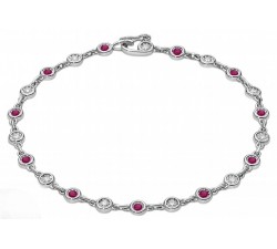 Bracciale in oro bianco 18kt della collezione Incontri Marca DonnaOro Jewels Diamanti naturali taglio brillante Ct. 0,33 colore G purezza SI Rubini...