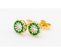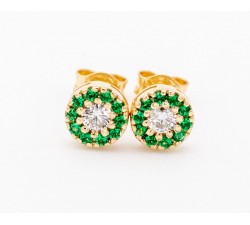 Orecchini bottone in oro giallo 18Kt Diamanti naturali taglio brillante Ct.0,16 colore F purezza Vs1 Tsavoriti taglio brillante Ct. 0,20 Dimensione...