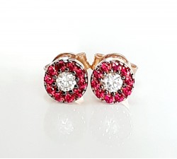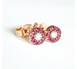 Orecchini bottone in oro rosa 18Kt Diamanti naturali taglio brillante Ct.0,16 colore F purezza Vs1 Rubini naturali taglio brillante Ct. 0,20...