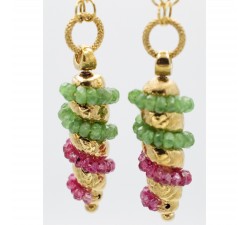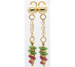 Orecchini pendenti in oro giallo 18Kt Chiusura perno e clip Smeraldi Rubini Lunghezza Cm.6,2 Corredati da certificato di garanzia e confezione...