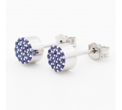 Orecchini a lobo, bottone con pavè di zaffiri blu in oro bianco 18Kt Zaffiri blu naturali taglio brillante Ct.0,31 Dimensione bottone 5mm....