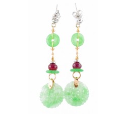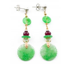 Orecchini in oro bianco e rosa 18Kt Diamanti taglio brillante per Ct.0,06 colore G purezza VS1 Giada Imperiale Rubino Lunghezza Cm.6,7 Corredato da...