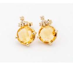 Orecchini in oro giallo 18Kt Quarzi citrini taglio tondo sfaccettato Diamanti taglio brillante per Ct.0,16 colore F purezza VS Dimensione...