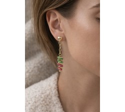 Orecchini pendenti in oro giallo 18Kt Chiusura perno e clip Smeraldi Rubini Lunghezza Cm.6,2 Corredati da certificato di garanzia e confezione...