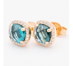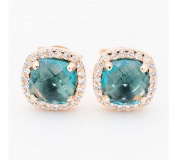 Orecchini a lobo in oro rosa 18Kt Diamanti naturali taglio brillante Ct.0,22 colore F purezza Vs1 Topazio blu london Dimensione Cm.0,85 Corredato...