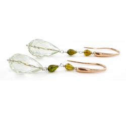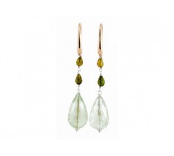 Orecchini pendenti in oro bianco e rosa 18Kt Tormaline a goccia da 5x4mm Quarzo a goccia da 18x10mm Lunghezza Cm.5,5 Corredati da certificato di...