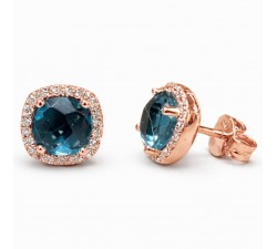 Orecchini a lobo in oro rosa 18Kt Diamanti naturali taglio brillante Ct.0,22 colore F purezza Vs1 Topazio blu london Dimensione Cm.0,85 Corredato...