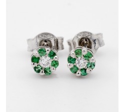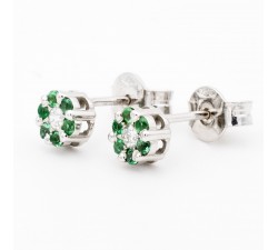 Orecchini in oro bianco 18Kt Diamanti naturali taglio brillante Ct.0,084 colore F purezza Vs1 Smeraldi naturali taglio brillante Ct. 0,20...
