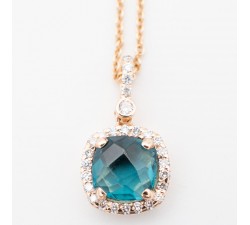 Girocollo in oro rosa 18Kt Diamanti naturali taglio brillante Ct.0,15 colore F purezza VS1 Topazio blu london quadrato sfaccettato Dimensione...