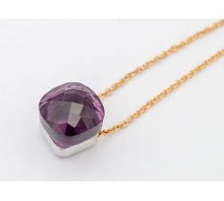 Girocollo in oro bianco e rosa 18Kt Ametista taglio a cubo Dimensione 1cm. Lunghezza catenina standard Corredato da certificato di garanzia e...