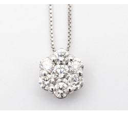 Pendente punto luce a fiore in oro bianco 18Kt Diamanti naturali taglio brillante Ct.0,68 colore F purezza Vs1 Lunghezza 42Cm Dimensione 7,7x8,6mm...