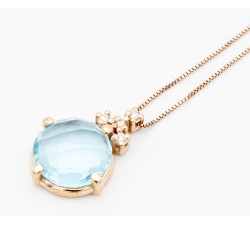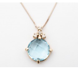 Girocollo in oro rosa 18Kt Diamanti naturali taglio brillante Ct.0,10 colore F purezza VS1 Topazio azzurro naturale tondo sfaccettato Dimensione...