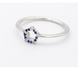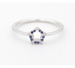 Anello a stella in oro bianco 18Kt con diamanti e zaffiri blu Modello Stellina Diamanti bianchi taglio brillante per Ct.0,05 colore F purezza VS2...