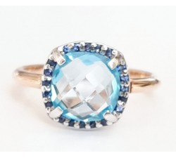 Anello con gambo in oro rosa 18Kt e castone in oro bianco 18kt Zaffiri blu naturale taglio brillante per Ct.0,10 Topazio azzurro sfaccettato...
