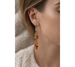 Orecchini in oro giallo 18Kt Peridoto a goccia Corniola a goccia Lunghezza Cm.8,3 Corredato da certificato di garanzia e confezione regalo...