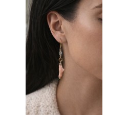 Orecchini pendenti in oro giallo e bianco 18Kt Corallo rosa, acquamarina milk e labradorite Lunghezza Cm.7,8 Orecchini di nostra produzione...