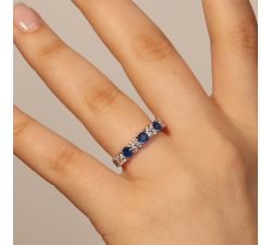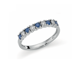 Anello Oro bianco 9Kt Marca OroGioia Diamanti naturali taglio brillante Ct. 0,08 colore G purezza SI Zaffiri Ct. 0,35 RIVENDITORI UFFICIALI...