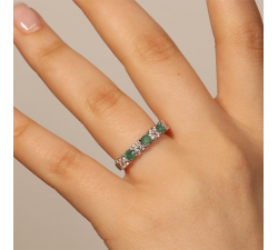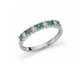 Anello Oro bianco 9Kt Marca OroGioia Diamanti naturali taglio brillante Ct. 0,08 colore G purezza SI Smeraldi Ct. 0,25 RIVENDITORI UFFICIALI...