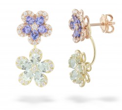 Orecchini pendenti in oro giallo e rosa 18Kt Marca Piero Milano Gioielli collezione Primavera Diamanti naturali taglio brillante Ct.0,68 Tanzanite...