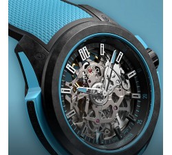 Il quadrante scheletrato nero con dettagli turchesi lascia intravedere il movimento automatico, mentre indici e lancette con Super-LumiNova garantiscono leggibilità anche al buio. L’estetica è moderna, tecnica e altamente riconoscibile.